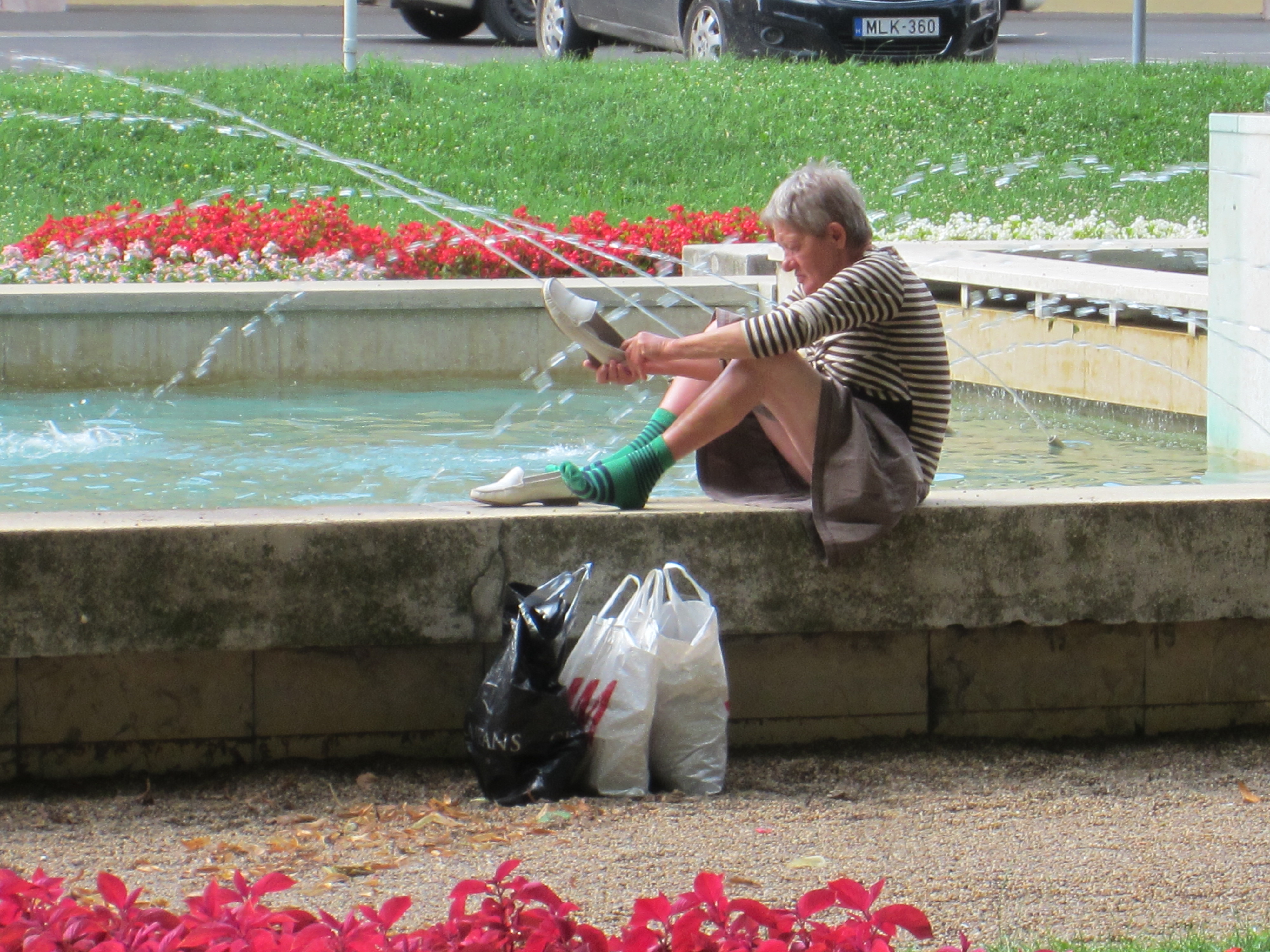 Monday morning…time to rent a car and travel beyond Budapest for a few days. We start with a quick hour drive in a southerly direction to the small Hungarian city of Szeged. I think I may be in a fantasy world. Szeged is pedestrian friendly, filled with green parks adorned with colorful flower beds and fountains where children are delighted by the unexpected rise and fall of water. I watch from the distance at a quiet fountain as an old woman sits, removes her shoes, plunks her feet (green socks and all) into the water and reaches out for the stream of cool water to rub over her arms. We continue through the park, sit down for a cup of coffee topped with a whipped cream dollop (I try not to consume these extra calories…for about two seconds, then I give in….yum).