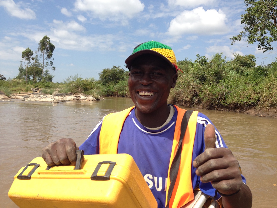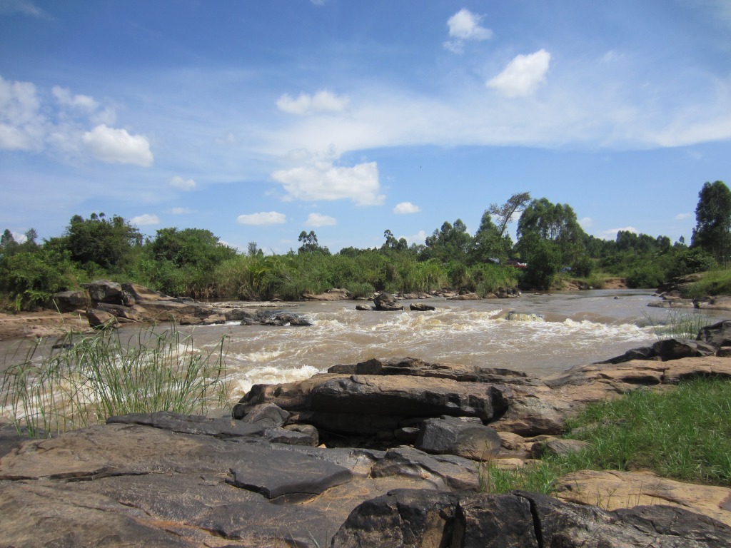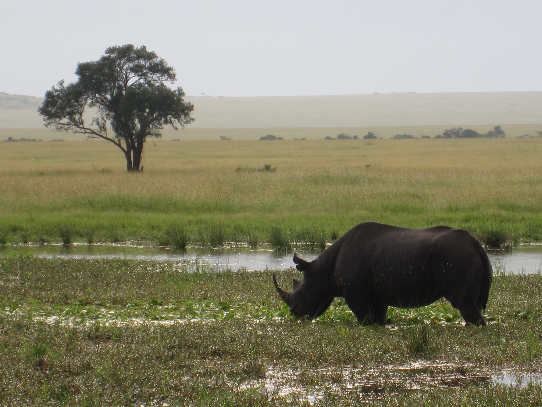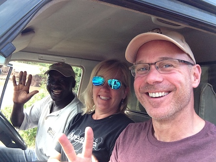 In all, Chris and I go on four game drives (for one morning drive the kitchen packs a picnic breakfast – Samson sets the table on the hood of the land rover using one of the Maasai blankets from the truck as a tablecloth). Samson examines the horizon, listens to birds and other animals, observes footprints, watches the behavior of both predator and prey animals, and communicates with other guides; he uses all of these clues to help us find the impressive animals. He drives over muddy “roads” (it has rained much more than usual), through rivers and up the slippery banks, into the grassy savannah, around heavily spiked acacai trees – all with our trusty open-air land rover. He identifies birds, explains animal behavior, stops for photos (“Sure! Why not?”), and laughs with us; he truly loves his job and is also in awe of all the Mara has to offer “Wow! Look at that! It is so beautiful!!”.