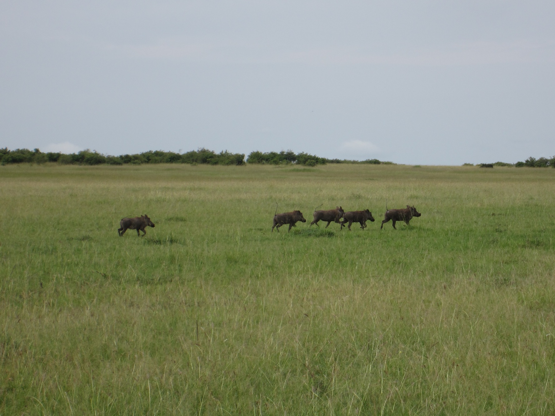 There are strutting ostriches, running wildebeest, striped zebras (one with a fairly fresh crocodile wound), herds of tail twitching impalas, topis with their “blue jeans and yellow socks”, graceful gazelles; we see retired general buffalo, forgetful warthogs with their “wifi” tails (running away then suddenly stopping :”wait. why am I running?”), hooting hippos, hungry ribby lionesses with “low bellies”.