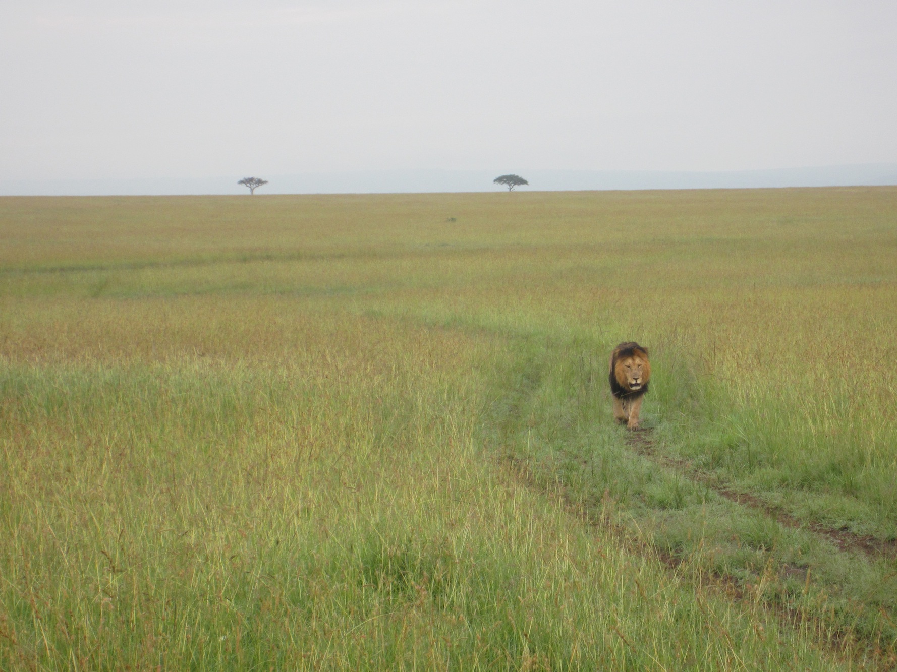 On the morning that we leave the Mara, we go on our last safari. We are on the lookout for male lions. We are in luck; Samson spots two heavily-maned aristocratic lions: Blackey and Lipstick, traversing the valley toward their resting spot for the day. Blackey is limping as a result of a three week old injury; his loyal friend Lipstick forges the way and patiently waits for Blackey to catch up. These regal and proud creatures disappear into the horizon.