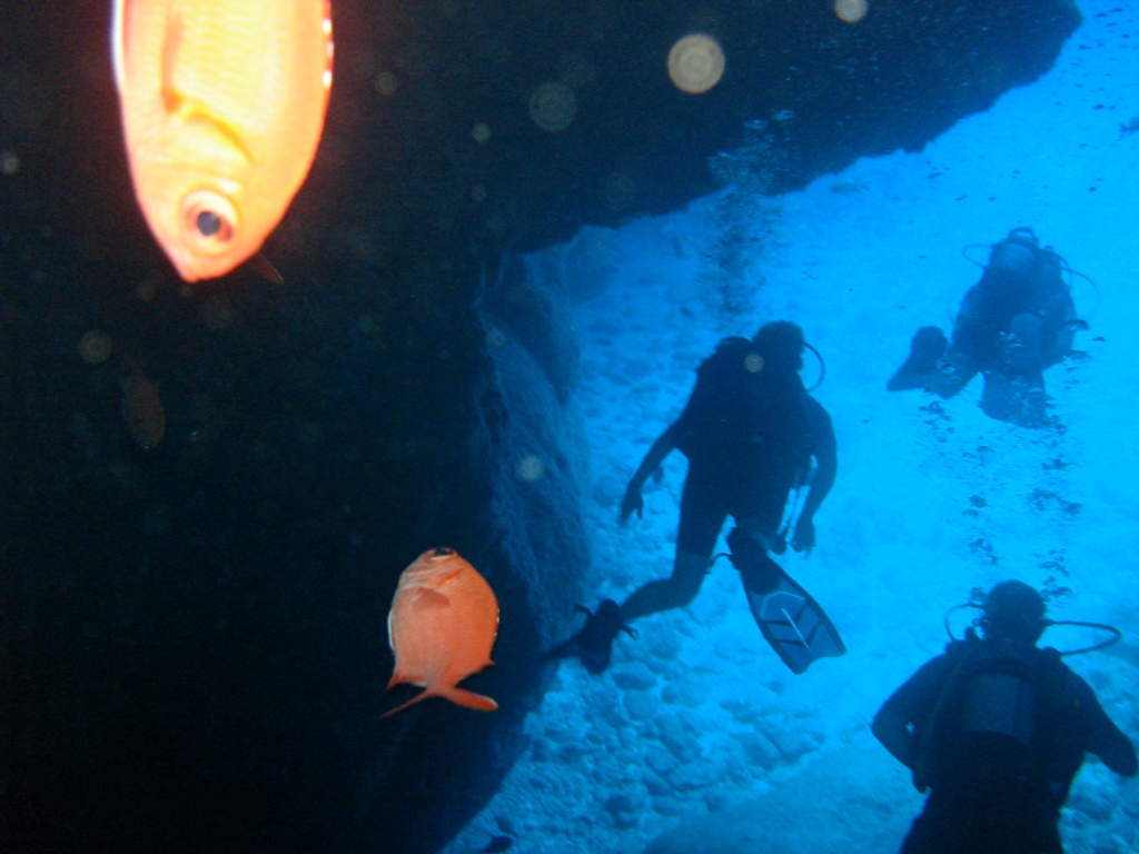 Of course, there are also sea adventures….We dusted off our diving gear after being certified three years ago and descended into the ocean for four beautiful dives, every time feeling increasingly confident. Each experience under water is different. For me, it starts with a mixture of excitement and jitteriness. After attaching the tank and BCD, getting the masks and fins on, then dropping backwards into the water – my nerves change into peaceful awe and respect for the colors, fish, reef, and ocean life. I feel the symbiosis in this natural setting, of the aquatic life, and also my Honeybuns who is my scuba buddy – there must be trust.