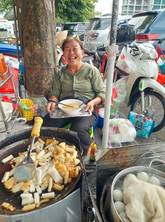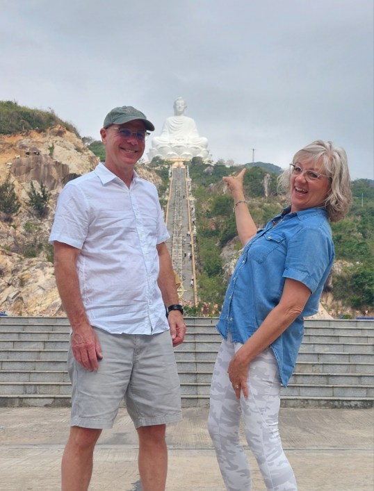 The color red. It is a lucky color. Of course, it is seen on Vietnamese flags in various hues of red (depending on the age of the flag) that fly, quite literally everywhere – a bright red background with a vibrant yellow star in the middle. Alongside the flag of Vietnam is the Communist red flag, with the yellow hammer and sickle. I think most Americans can’t picture what Communism looks like, and honestly on the surface, it doesn’t look a lot different in Communist Vietnam than what we would see in our democratic country. Differences I have noticed are the lack of homelessness on the streets and minimal panhandling in Vietnam. Also, when discussing with people we meet, we understand that there are very harsh punishments for what seems to us as minor infractions. Protesting the government is not allowed. There is still propaganda (we’ve seen plenty of billboards with the iconic red background, yellow print and groups of smiling people praising Ho Chi Minh). We have also witnessed censorship (we happened to turn the TV on to a news channel where an advertisement was being replaced with a screen that said the content was not agreeable with the government’s “message”). As strange as that seems, it does not feel like the Cold War oppression that existed when we were growing up in the 70’s…..