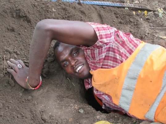 Freddy and Richard are the conjoined BtGA duo. They come as a pair. Freddy has a stern demeanor and barks orders at the Maasai guys, but I can usually get a smile out of him. Freddy translates English into Swahili for us when Bobby is away. He keeps the group together. Richard smiles easily – except when he is not working next to Freddy; he is cool in his yellow sunglasses, is good with a welder, and likes to climb.